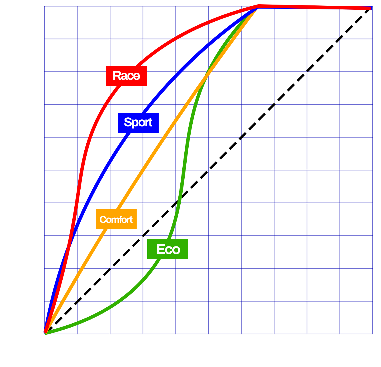 Simply put, if you set the tune to Eco the pedal becomes less sensitive and has a different linear curve saving you gas.